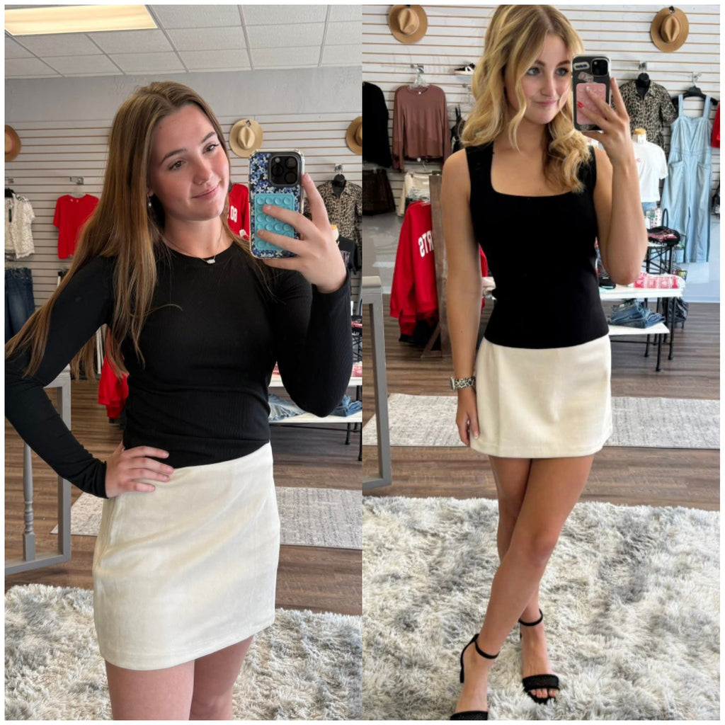 Step into style with this Ecru Suede Mini Skirt, perfectly blending soft texture and flattering fit. Its creamy ecru shade adds a fresh, playful touch to any outfit, while the suede material gives a subtle luxe vibe. Whether paired with boots or sneakers, this mini skirt brings a fun and flirty edge to your look. Get ready to turn heads!