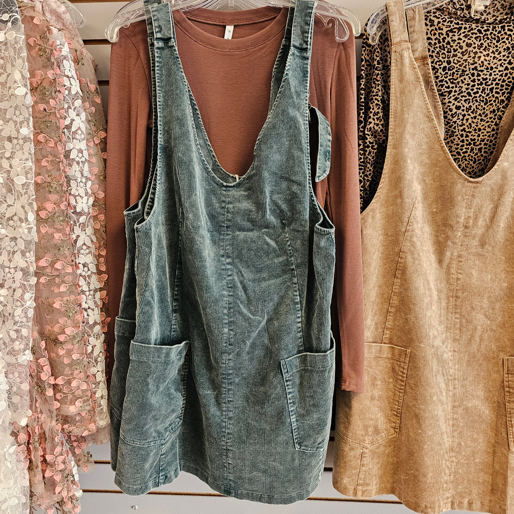 Green Corduroy Overall Dress