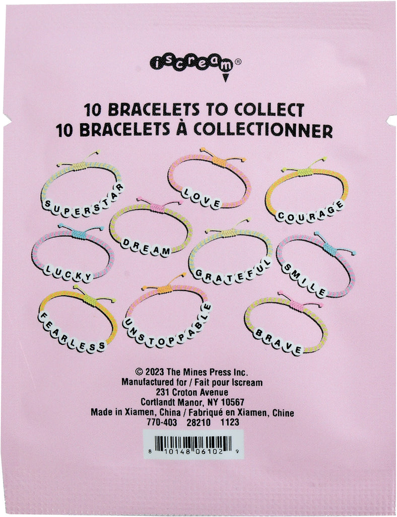 Open one of these surprise packages and see which inspirational word will guide you! Inside each mystery pack is a colorful, adjustable corded bracelet with a word like "lucky", "fearless", "dream" or "smile". Which saying will you get? Wear them, stack them, trade them! These bracelets make great party favors and gifts for pen pals. Each sold separately.