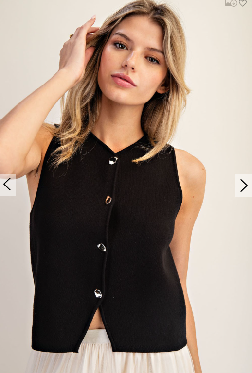 Button Down Front Sleeveless Knit Top ✨