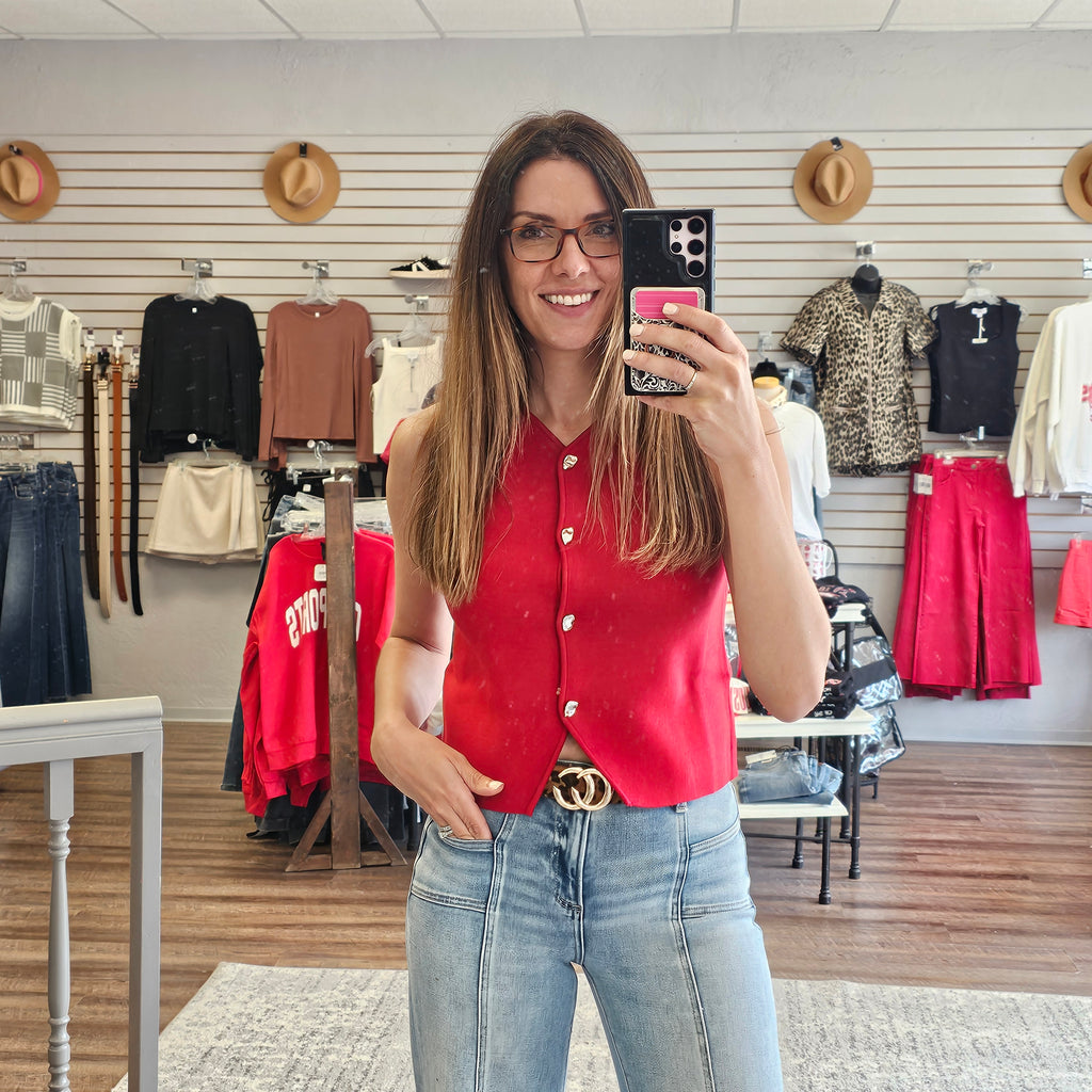 Red Wine Front Button Vest Top