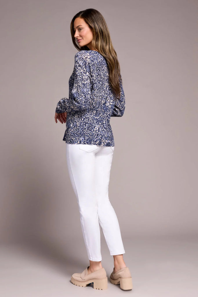 Tribal Printed Cable Cotton Crew Neck Sweater