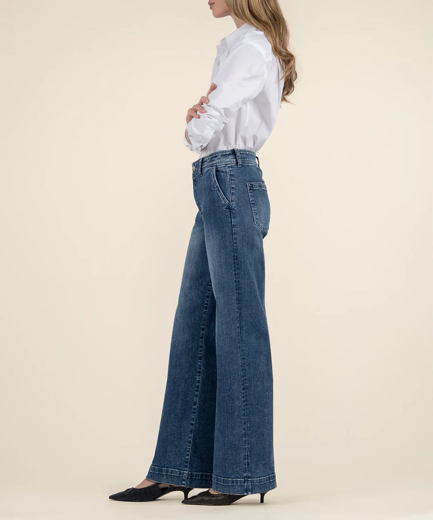Elevate your denim game with the Kut High Rise Wide Leg Jeans from Kut From The Cloth. These on-trend jeans feature a perfect high rise fit and a wide leg design, providing both comfort and style.